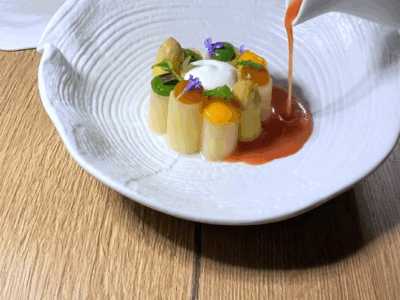 Le chef Cédric ROTT, du restaurant Au Bœuf à Hohwiller, nous surprend avec une asperge blanche audacieusement twistée par un subtil accord sucré-salé.