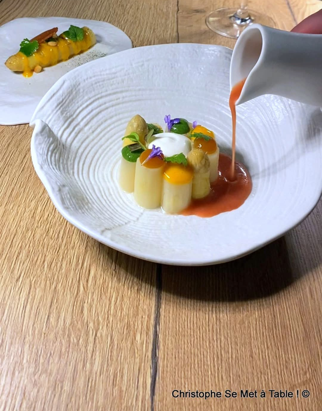 Le chef Cédric ROTT, du restaurant Au Bœuf à Hohwiller, nous surprend avec une asperge blanche audacieusement twistée par un subtil accord sucré-salé.