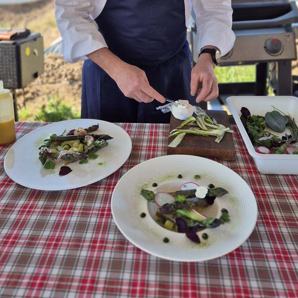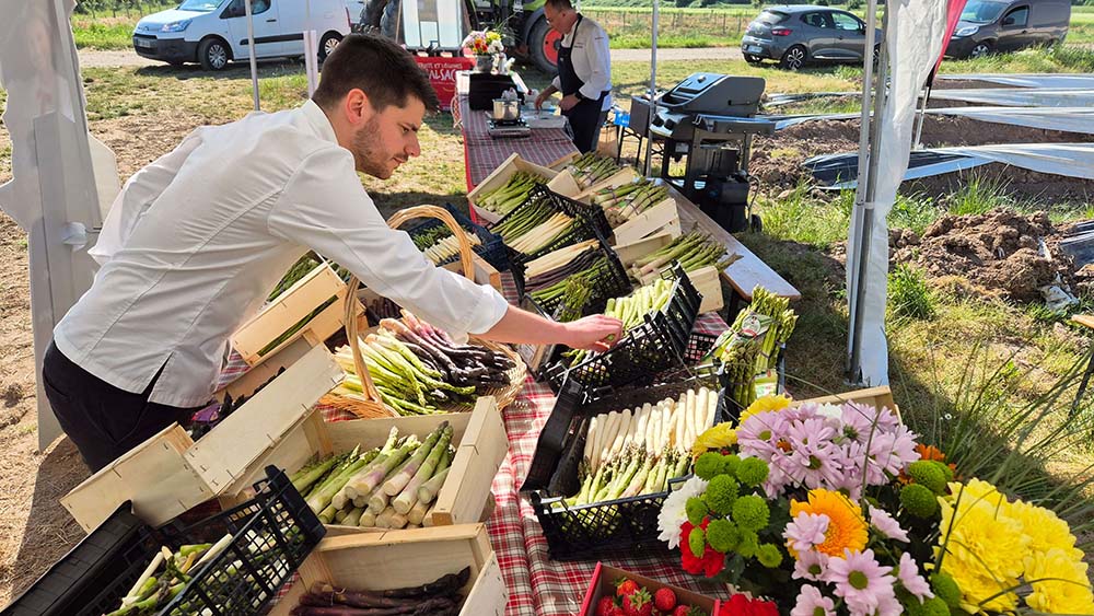 Mercredi 14 mai, en plein champ, au cœur d’une aspergeraie de la ferme Clarisse à Sigolsheim, les membres de l’association pour la promotion de l’asperge d’Alsace ont fait la preuve que l’asperge d’Alsace était pleine de ressource et surtout capable de s’adapter tant aux envies de BBQ que de créativité culinaire.