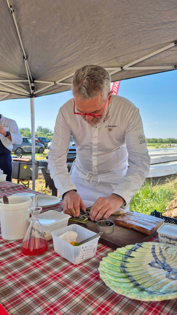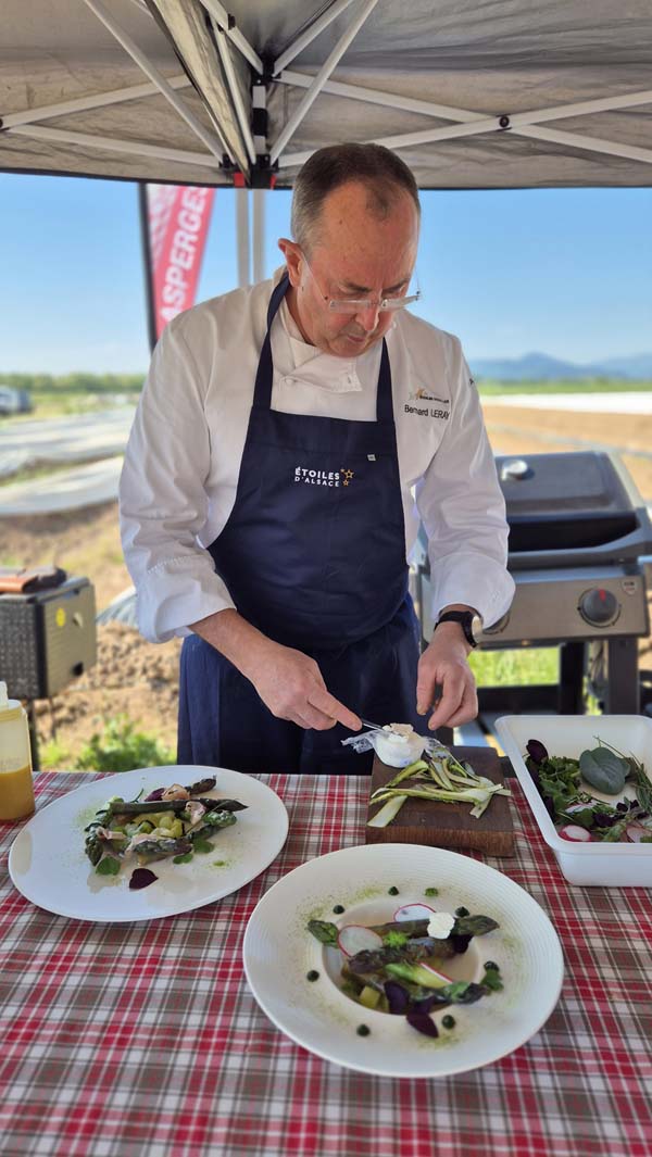 Pour ce faire ils ont conviés les chefs Eric Girardin (la Maison des Têtes à Colmar), Bernard Leray (La Nouvelle Auberge à Wihr-au-Val), Alexandre Zoccolan (champion du monde Jeunes Talents Escoffier) à libérer leur imagination créatrice sur le thème l’asperge estivale.